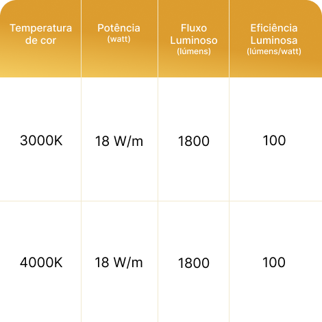 Fitas LED com variedade de potências e temperaturas de cor que se adaptam facilmente a diferentes tipos de projeto, oferecendo soluções flexíveis e versáteis para iluminação direta, indireta ou decorativa. Ideais para criar efeitos contínuos de luz com naturalidade, valorizando ambientes residenciais, comerciais e corporativos com eficiência e praticidade.