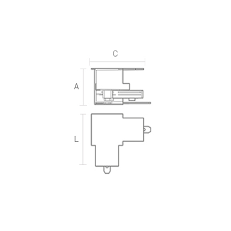 Acessório de junção angular projetado para conectar dois trilhos de sobrepor em um ângulo perfeito de 90°. Desenvolvido para assegurar a continuidade elétrica e a estabilidade mecânica na transição entre trilhos, eliminando frestas e garantindo um encaixe firme.