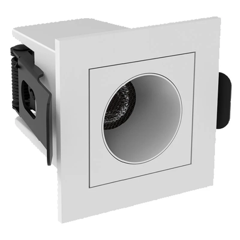 Luminária LED de embutir composta por módulos diversos que permitem diferentes tipos de iluminação, como difusa, pontual e de destaque.