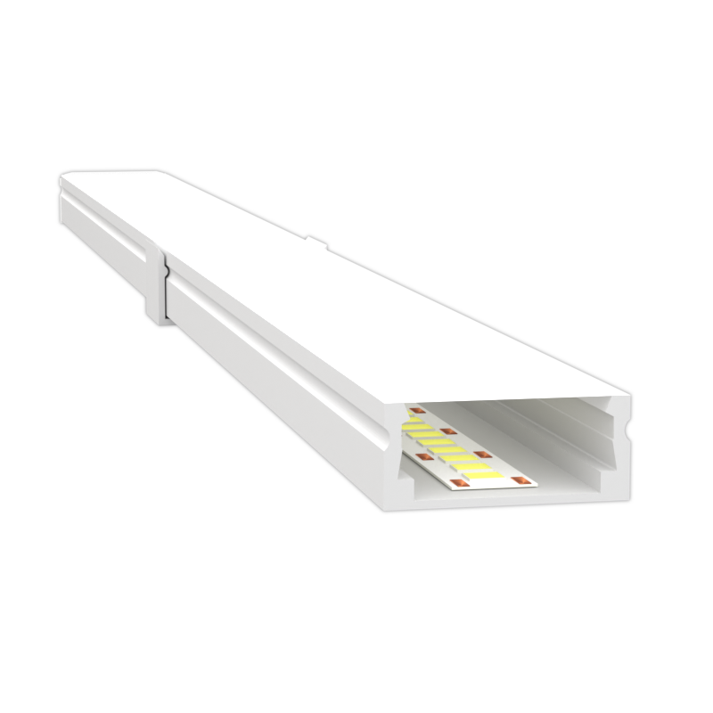 Perfil linear LED de sobrepor que cria linhas contínuas de luz com acabamento clean e iluminação uniforme, valorizando arquitetura, mobiliários e marcenarias. Ideal para ambientes residenciais, corporativos, comerciais e hospitalares que demandam eficiência energética e estética minimalista.